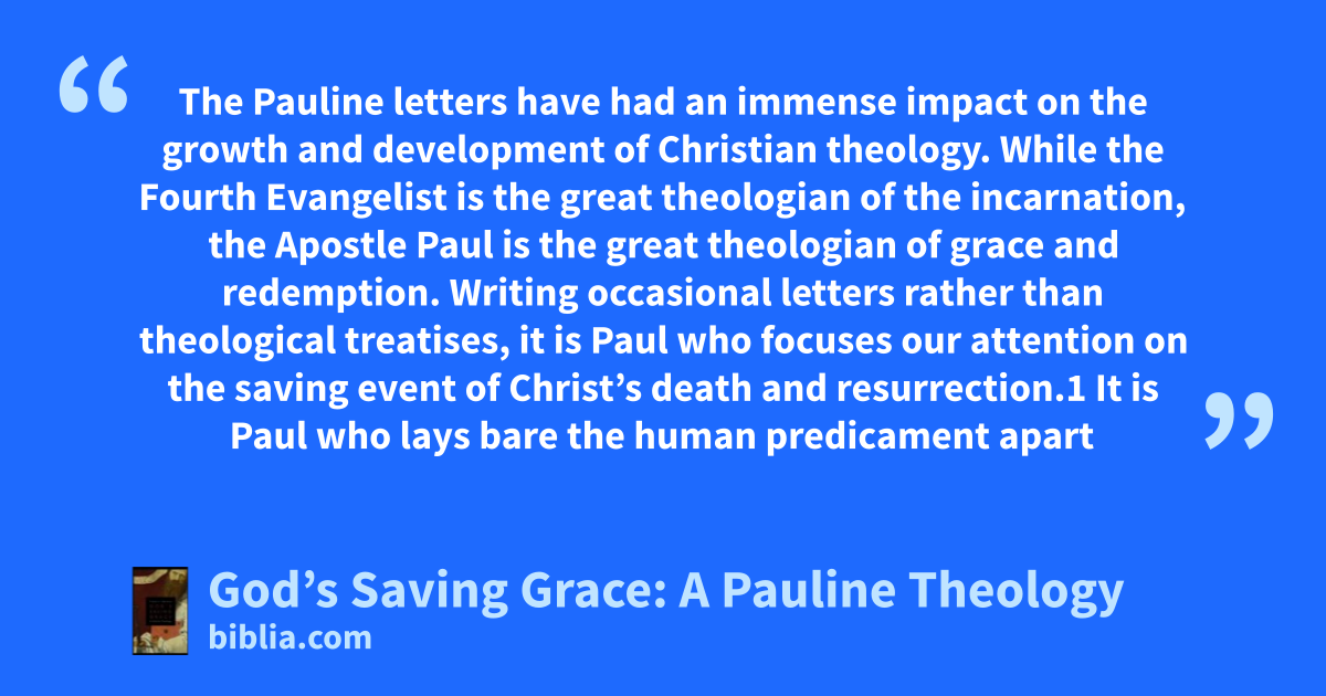 The Pauline letters have had an immense impact on the growth and development of Christian theology. While the Fourth Evangelist is the great theologian of the incarnation, the Apostle Paul is the great theologian of grace and redemption. Writing occasional letters rather than theological treatises, it is Paul who focuses our attention on the saving event of Christ’s death and resurrection.1 It is Paul who lays bare the human predicament apart