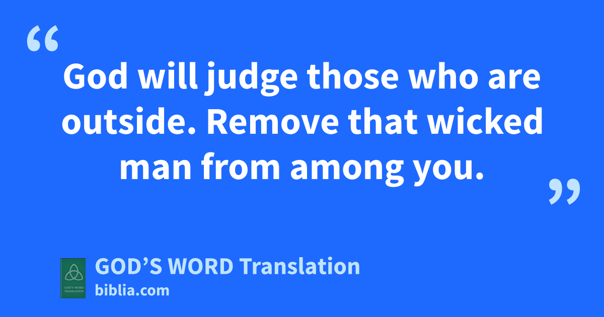 12 After all, do I have any business judging those who are outside ⸤the Christian faith⸥? Isn’t it your business to judge those who are inside? 13 God will judge those who are outside. Remove that wicked man from among you.