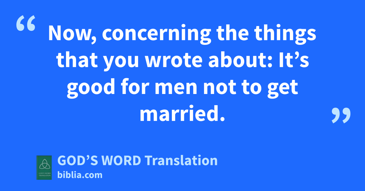 1 Now, concerning the things that you wrote about: It’s good for men not to get married. 2 But in order to avoid sexual sins, each man should have his own wife, and each woman should have her own husband.