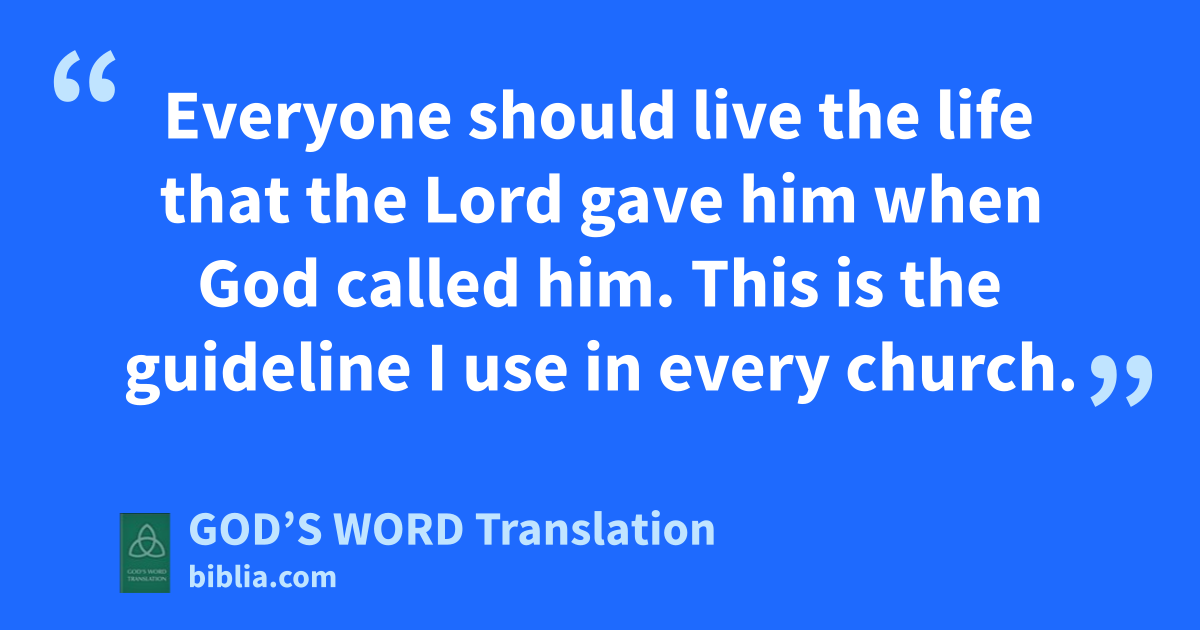 17 Everyone should live the life that the Lord gave him when God called him. This is the guideline I use in every church.