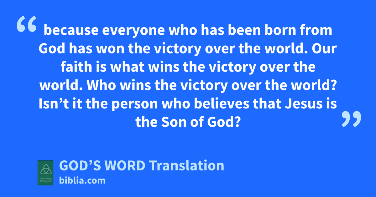 1 Everyone who believes that Jesus is the Messiah has been born from God. Everyone who loves the Father also loves his children. 2 We know that we love God’s children when we love God by obeying his commandments. 3 To love God means that we obey his commandments. Obeying his commandments isn’t difficult 4 because everyone who has been born from God has won the victory over the world. Our faith is what wins the victory over the world. 5 Who wins the victory over the world? Isn’t it the person who believes that Jesus is the Son of God?