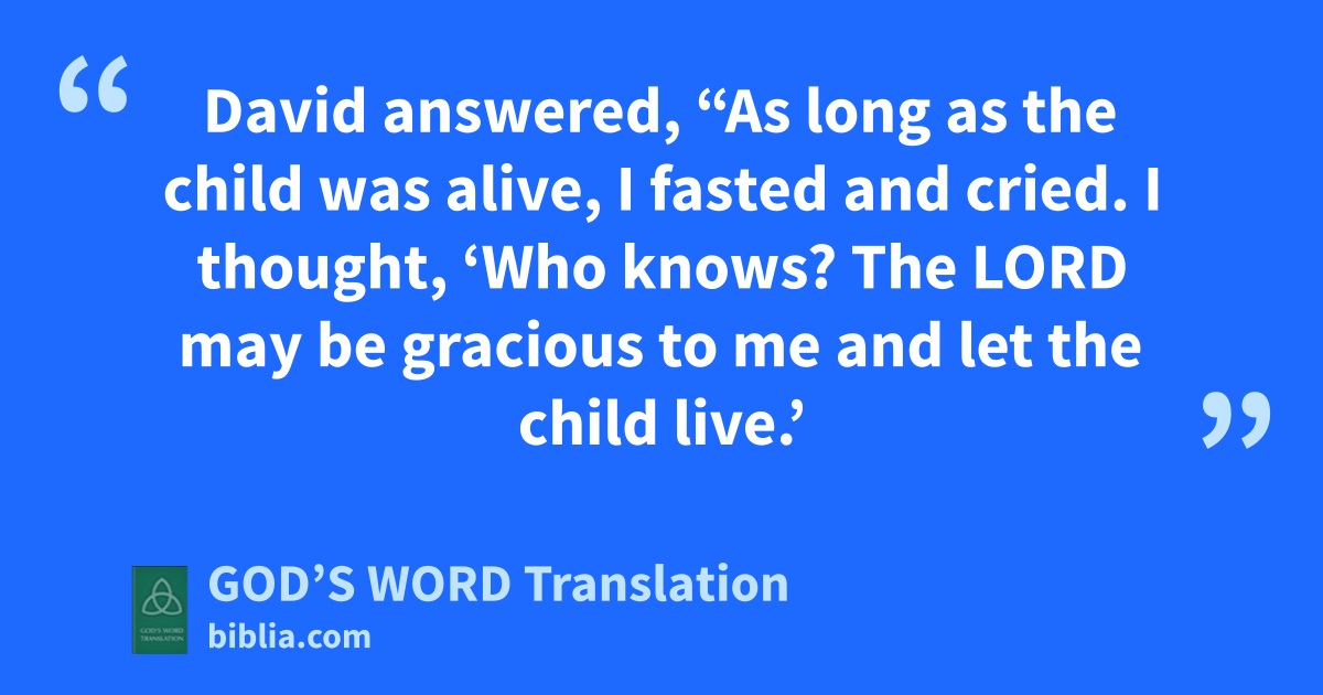 22 David answered, “As long as the child was alive, I fasted and cried. I thought, ‘Who knows? The Lord may be gracious to me and let the child live.’ 23 But why should I fast now that he’s dead? Can I bring him back? ⸤Someday⸥ I’ll go to him, but he won’t come back to me.”