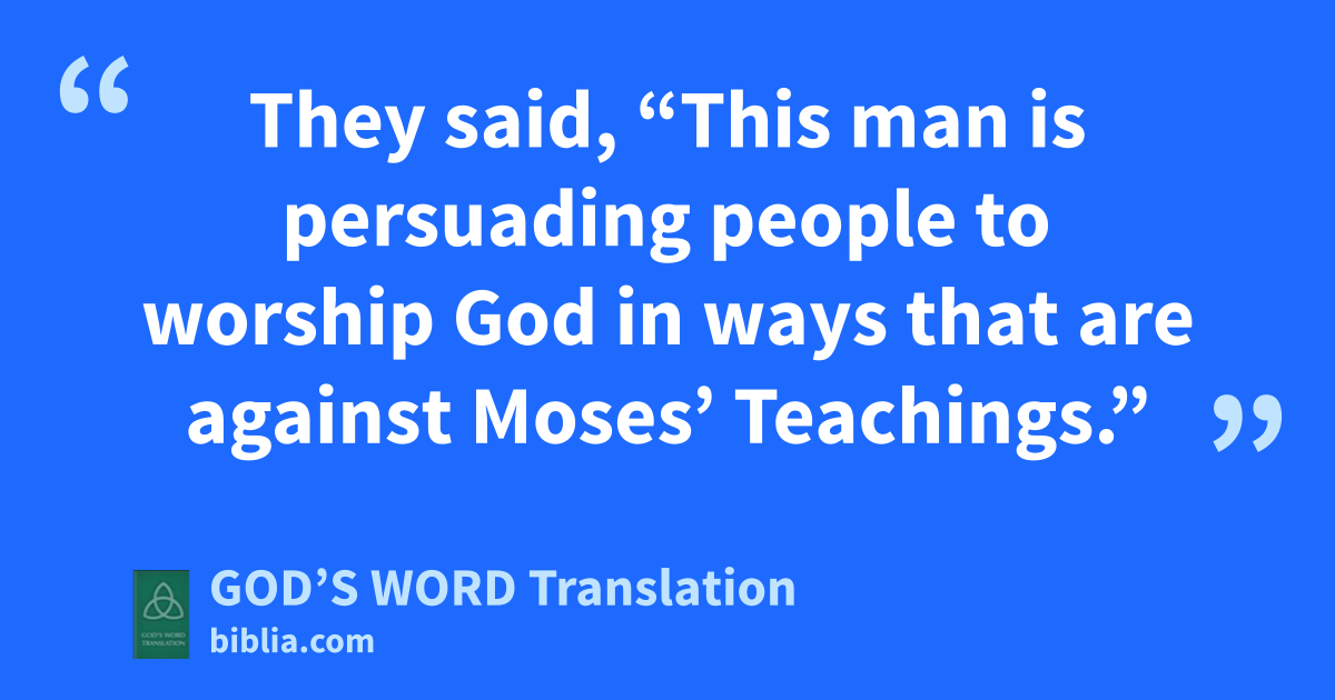 12 While Gallio was governor of Greece, the Jews had one thought in mind. They attacked Paul and brought him to court. 13 They said, “This man is persuading people to worship God in ways that are against Moses’ Teachings.”