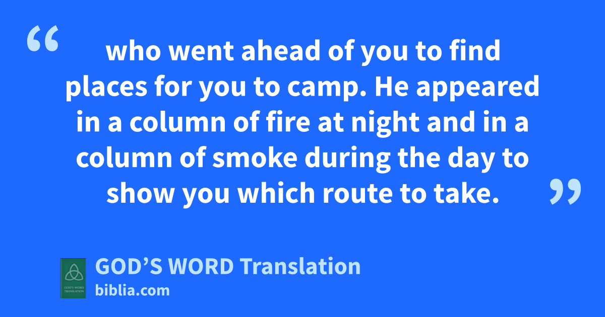 32 In spite of this, you didn’t trust the Lord your God, 33 who went ahead of you to find places for you to camp. He appeared in a column of fire at night and in a column of smoke during the day to show you which route to take.