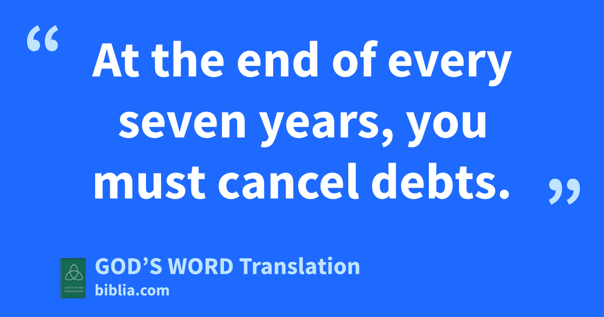 1 At the end of every seven years, you must cancel debts. 2 This is what you will do: If you’ve made a loan, don’t collect payment on the debt your neighbor still owes you. Don’t demand that your neighbor or relative pay you, because the ⸤time⸥ for suspending payments on debts has been proclaimed in the Lord’s honor. 3 You may demand that a foreigner pay, but don’t collect payment on the debt another Israelite still owes you. 4 In any case, there shouldn’t be any poor people among you, because the Lord your God will certainly bless you in the land he is giving you as your own possession. 5 He will bless you only if you listen carefully to the Lord your God and faithfully obey all these commands I’m giving you today. 6 The Lord your God will bless you, as he promised. You will make loans to many nations, but you will not have to borrow from any of them. You will rule many nations, but no nation will ever rule you.