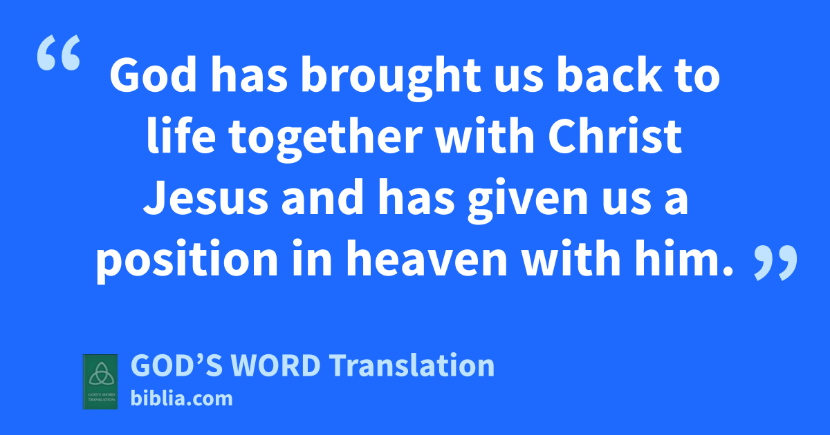 4 But God is rich in mercy because of his great love for us. 5 We were dead because of our failures, but he made us alive together with Christ. (It is God’s kindnessa that saved you.) 6 God has brought us back to life together with Christ Jesus and has given us a position in heaven with him. 7 He did this through Christ Jesus out of his generosity to us in order to show his extremely rich kindness in the world to come. 8 God saved you through faith as an act of kindness. You had nothing to do with it. Being saved is a gift from God. 9 It’s not the result of anything you’ve done, so no one can brag about it. 10 God has made us what we are. He has created us in Christ Jesus to live lives filled with good works that he has prepared for us to do.