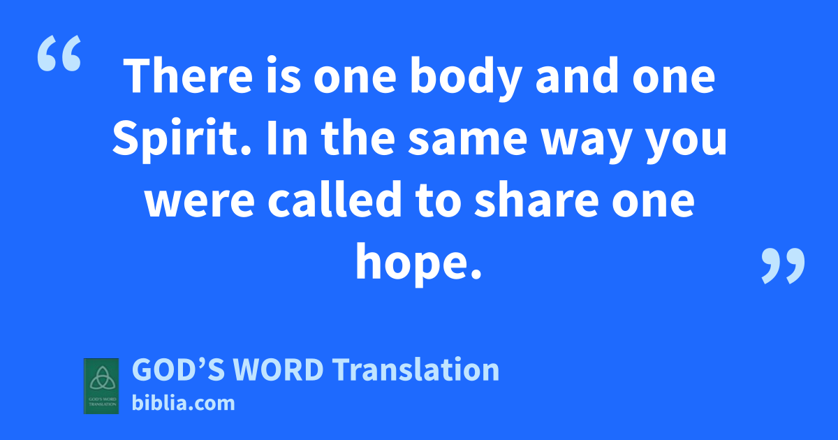 1 I, a prisoner in the Lord, encourage you to live the kind of life which proves that God has called you. 2 Be humble and gentle in every way. Be patient with each other and lovingly accept each other. 3 Through the peace that ties you together, do your best to maintain the unity that the Spirit gives. 4 There is one body and one Spirit. In the same way you were called to share one hope. 5 There is one Lord, one faith, one baptism, 6 one God and Father of all, who is over everything, through everything, and in everything.