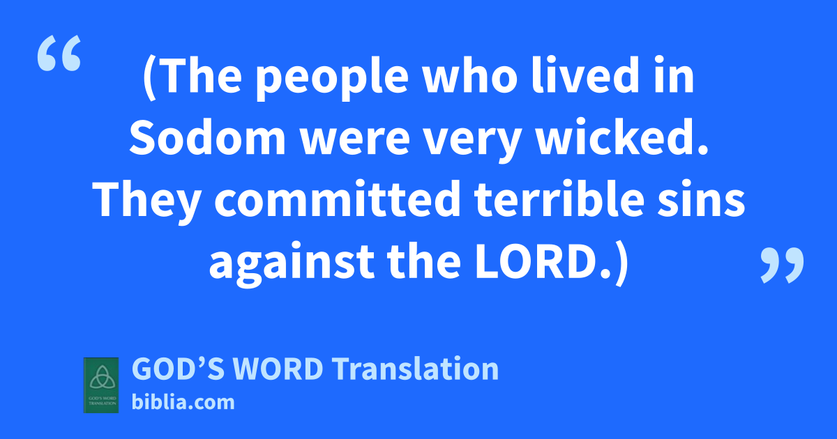 11 Lot chose the whole Jordan Plain for himself. He moved toward the east. They each went their own way. 12 Abram lived in Canaan, while Lot lived among the cities of the plain, moving his tents as far as Sodom. 13 (The people who lived in Sodom were very wicked. They committed terrible sins against the Lord.)