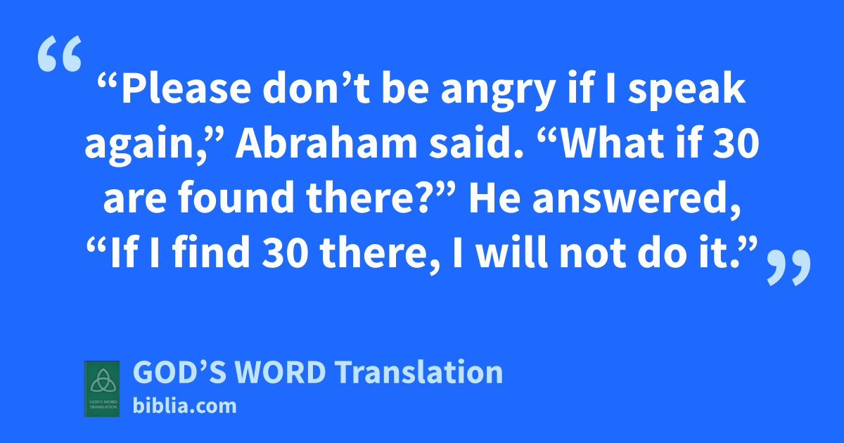 30 “Please don’t be angry if I speak again,” Abraham said. “What if 30 are found there?”