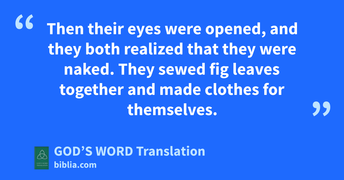 7 Then their eyes were opened, and they both realized that they were naked. They sewed fig leaves together and made clothes for themselves.