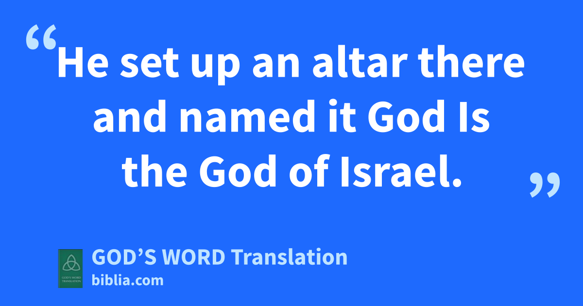18 So having come from Paddan Aram, Jacob came safely to the city of Shechem in Canaan. He camped within sight of the city. 19 Then he bought the piece of land on which he had put up his tents. He bought it from the sons of Hamor, father of Shechem, for 100 pieces of silver. 20 He set up an altar there and named it God Is the God of Israel.