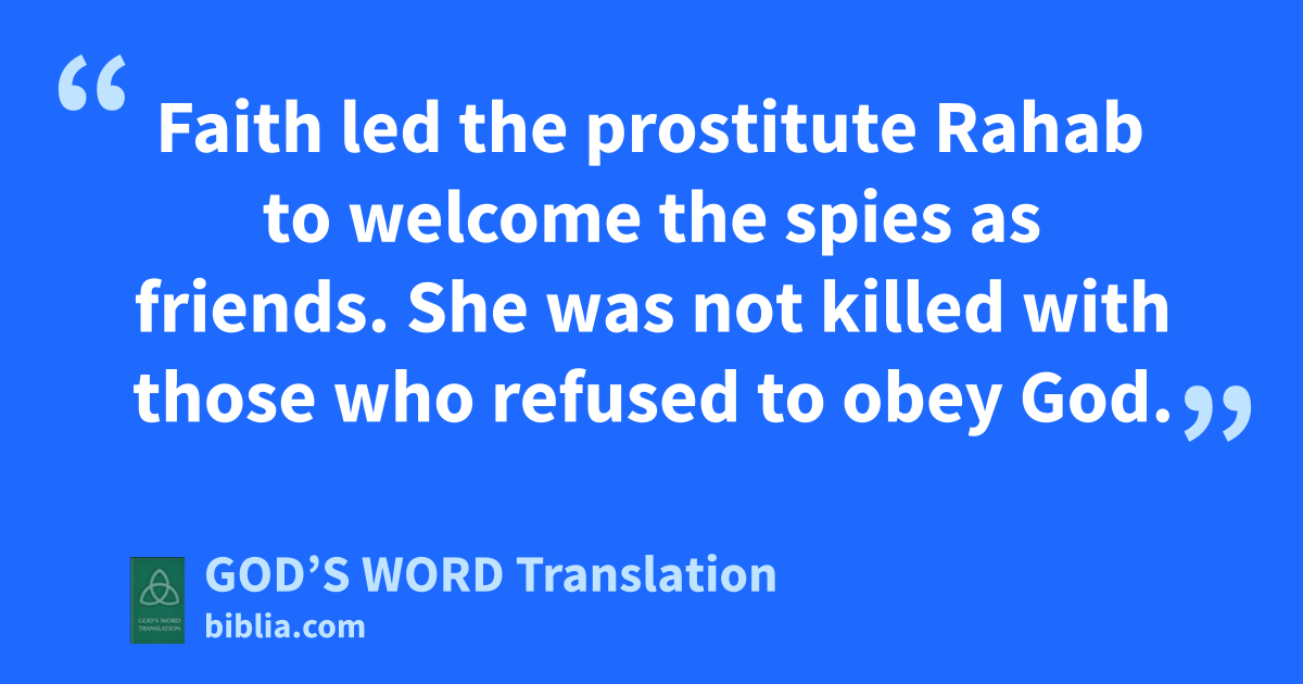 31 Faith led the prostitute Rahab to welcome the spies as friends. She was not killed with those who refused to obey God.