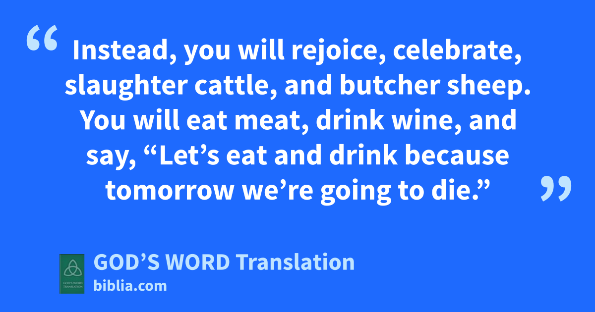 “Let’s eat and drink because tomorrow we’re going to die.”
