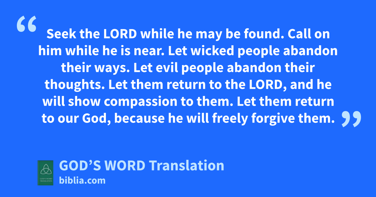 Scripture references from GOD’S WORD are used by permission. Copyright 1995 by God’s Word to the Nations Bible Society. All rights reserved. Up to 500 verses from GOD’S WORD may be quoted in any form (printed, written, visual, electronic, or audio) without written permission, provided that no more than half of any one book is quoted, and the verses quoted do not amount to more than 25% of the text of the work in which they are quoted. The designation (GOD’S WORD) must always appear after each quotation. In addition, if the quotation is used in a work that is not for sale, the work must bear the following notice either on the title page or reverse thereof of each copy, or in a location where it can be readily perceived by the reader: GOD’S WORD is a copyrighted work of God’s Word to the Nations Bible Society. Quotations are used by permission. If used in a work that is for sale, the following copyright notice must be used: GOD’S WORD is a copyrighted work of God’s Word to the Nations Bible Society. Quotations are used by permission. Copyright 1995 by God’s Word to the Nations Bible Society. All rights reserved. For quotation of over 500 verses and/or questions about these policies, contact God’s Word to the Nations Bible Society, P.O. Box 26343, Cleveland, Ohio 44126-0343, U.S.A. |