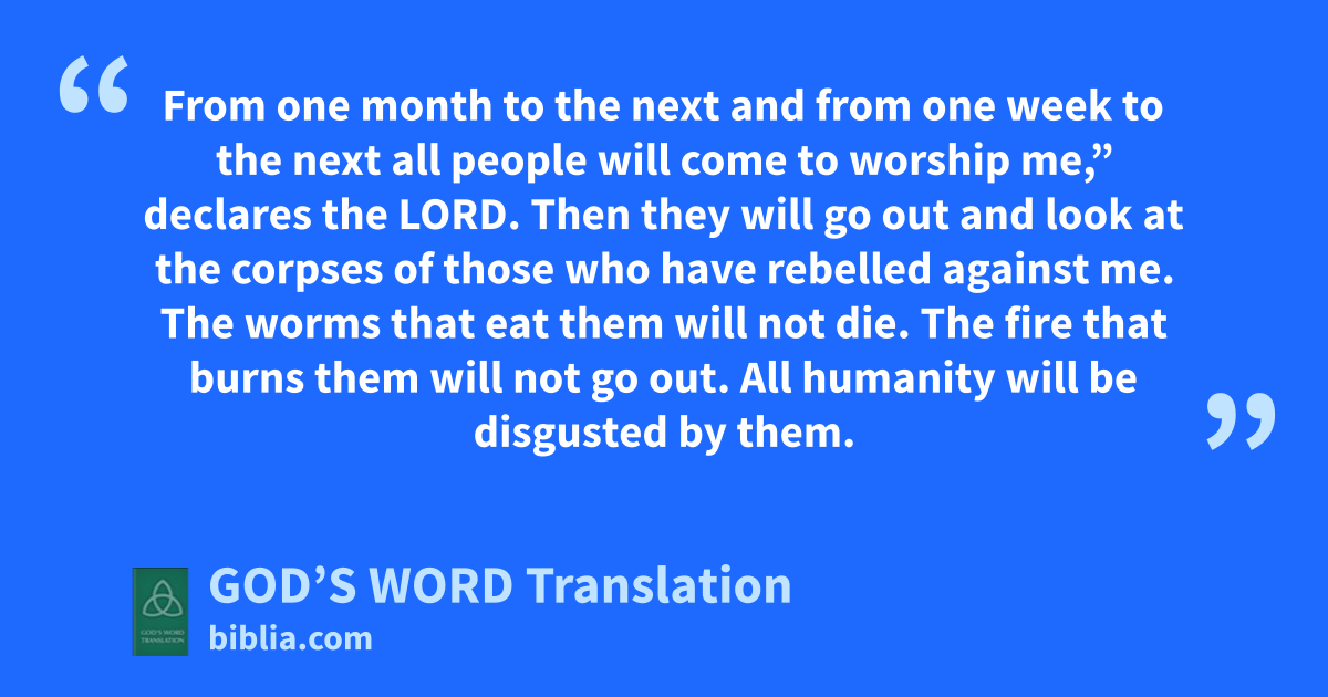 and look at the corpses of those who have rebelled against me.
