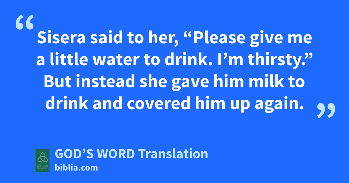 19 Sisera said to her, “Please give me a little water to drink. I’m thirsty.” But instead she gave him milk to drink and covered him up again.