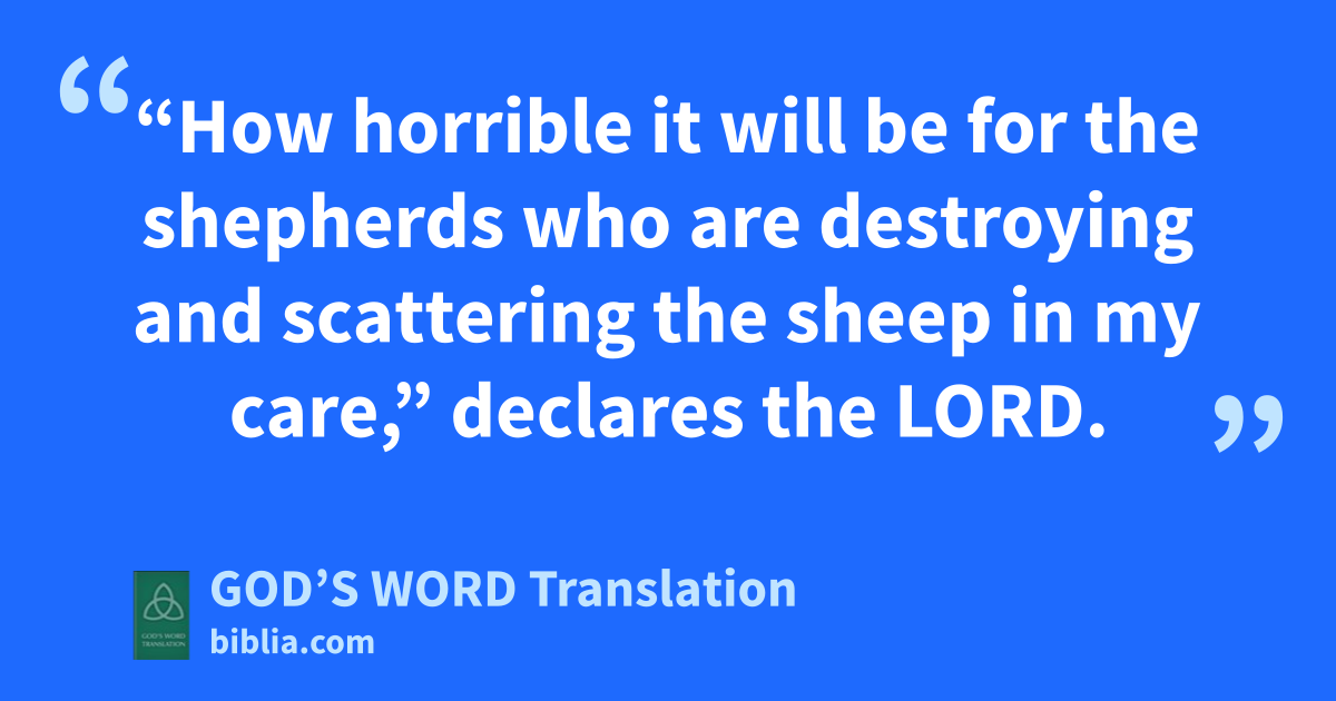 1 “How horrible it will be for the shepherds who are destroying and scattering the sheep in my care,” declares the Lord. 2 “This is what I, the Lord God of Israel, said to the shepherds who take care of my people: You have scattered my sheep and chased them away. You have not taken care of them, so now I will take care of you by punishing you for the evil you have done,” declares the Lord.