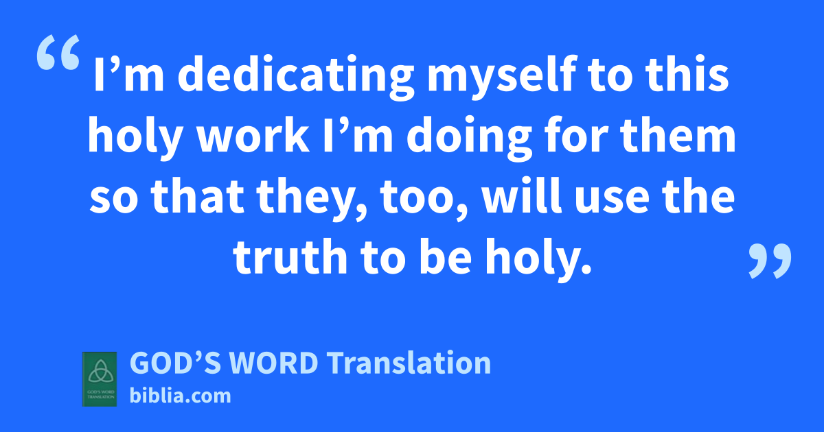 17 “Use the truth to make them holy. Your words are truth. 18 I have sent them into the world the same way you sent me into the world. 19 I’m dedicating myself to this holy work I’m doing for them so that they, too, will use the truth to be holy.