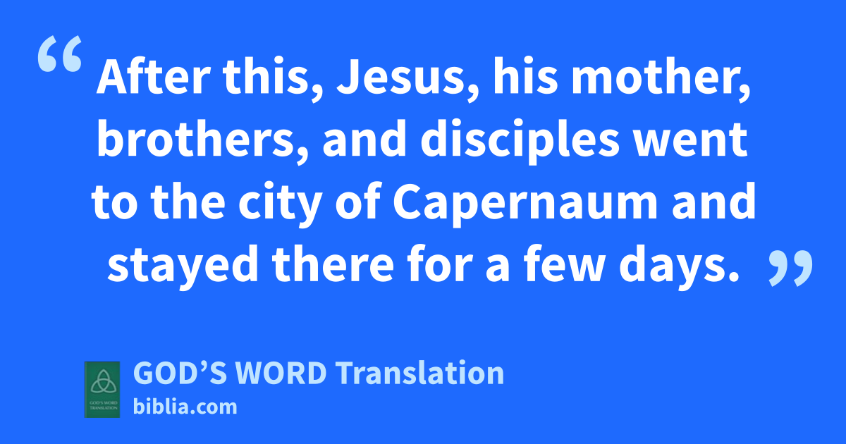 12 After this, Jesus, his mother, brothers, and disciples went to the city of Capernaum and stayed there for a few days.