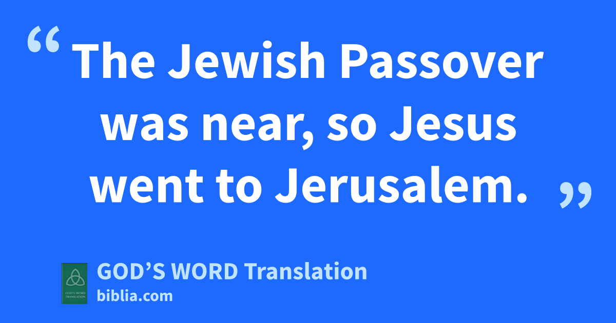 13 The Jewish Passover was near, so Jesus went to Jerusalem. 14 He found those who were selling cattle, sheep, and pigeons in the temple courtyard. He also found moneychangers sitting there. 15 He made a whip from small ropes and threw everyone with their sheep and cattle out of the temple courtyard. He dumped the moneychangers’ coins and knocked over their tables.