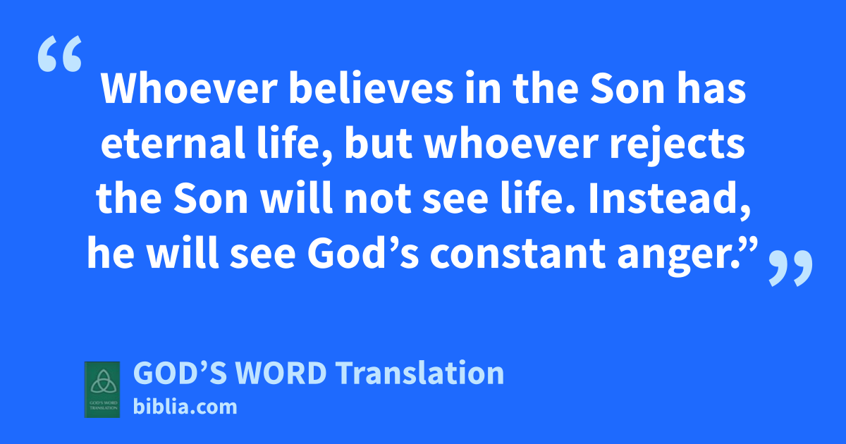 31 “The person who comes from above is superior to everyone. I, a person from the earth, know nothing but what is on earth, and that’s all I can talk about. The person who comes from heaven is superior to everyone 32 and tells what he has seen and heard. Yet, no one accepts what he says. 33 I have accepted what that person said, and I have affirmed that God is truthful. 34 The man whom God has sent speaks God’s message. After all, God gives him the Spirit without limit. 35 The Father loves his Son and has put everything in his power. 36 Whoever believes in the Son has eternal life, but whoever rejects the Son will not see life. Instead, he will see God’s constant anger.”