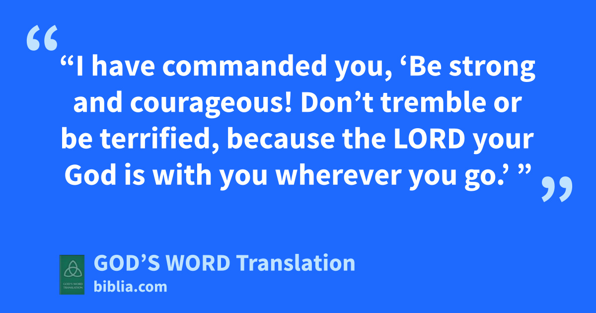 9 “I have commanded you, ‘Be strong and courageous! Don’t tremble or be terrified, because the Lord your God is with you wherever you go.’ ”