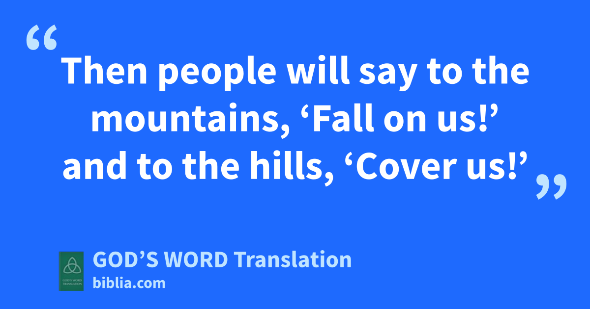 27 A large crowd followed Jesus. The women in the crowd cried and sang funeral songs for him. 28 Jesus turned to them and said, “You women of Jerusalem, don’t cry for me! Rather, cry for yourselves and your children! 29 The time is coming when people will say, ‘Blessed are the women who couldn’t get pregnant, who couldn’t give birth, and who couldn’t nurse a child.’ 30 Then people will say to the mountains, ‘Fall on us!’ and to the hills, ‘Cover us!’ 31 If people do this to a green tree, what will happen to a dry one?”