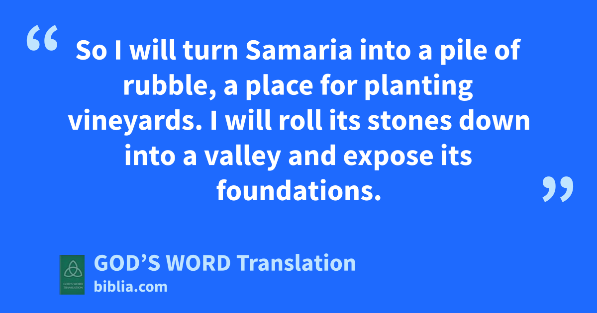 6 So I will turn Samaria into a pile of rubble,