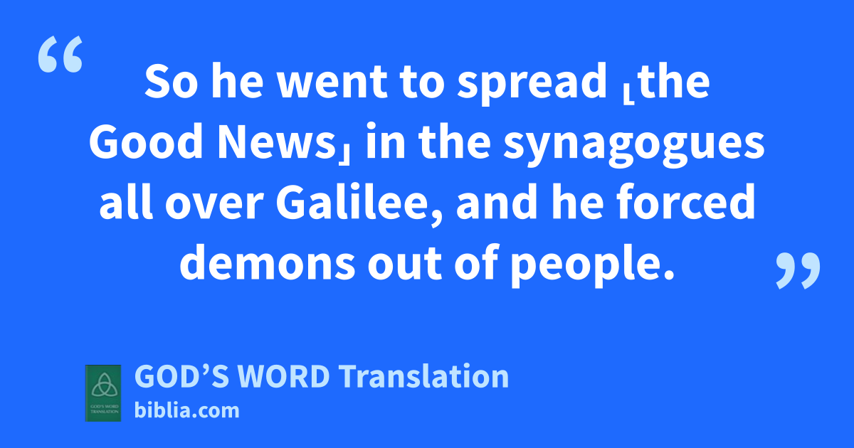 39 So he went to spread ⸤the Good News⸥ in the synagogues all over Galilee, and he forced demons out of people.