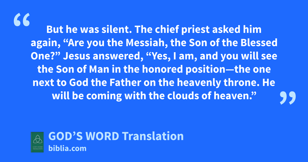 62 Jesus answered, “Yes, I am, and you will see the Son of Man in the honored position—the one next to God the Father on the heavenly throne. He will be coming with the clouds of heaven.”