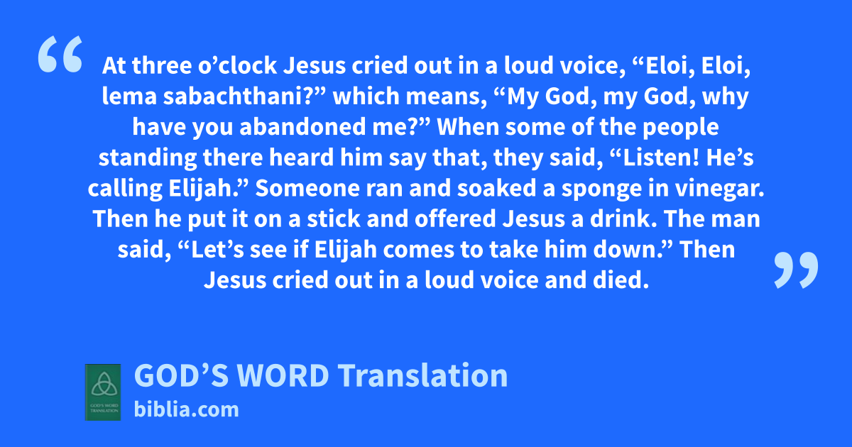 33 At noon darkness came over the whole land until three in the afternoon. 34 At three o’clock Jesus cried out in a loud voice, “Eloi, Eloi, lema sabachthani?” which means, “My God, my God, why have you abandoned me?”