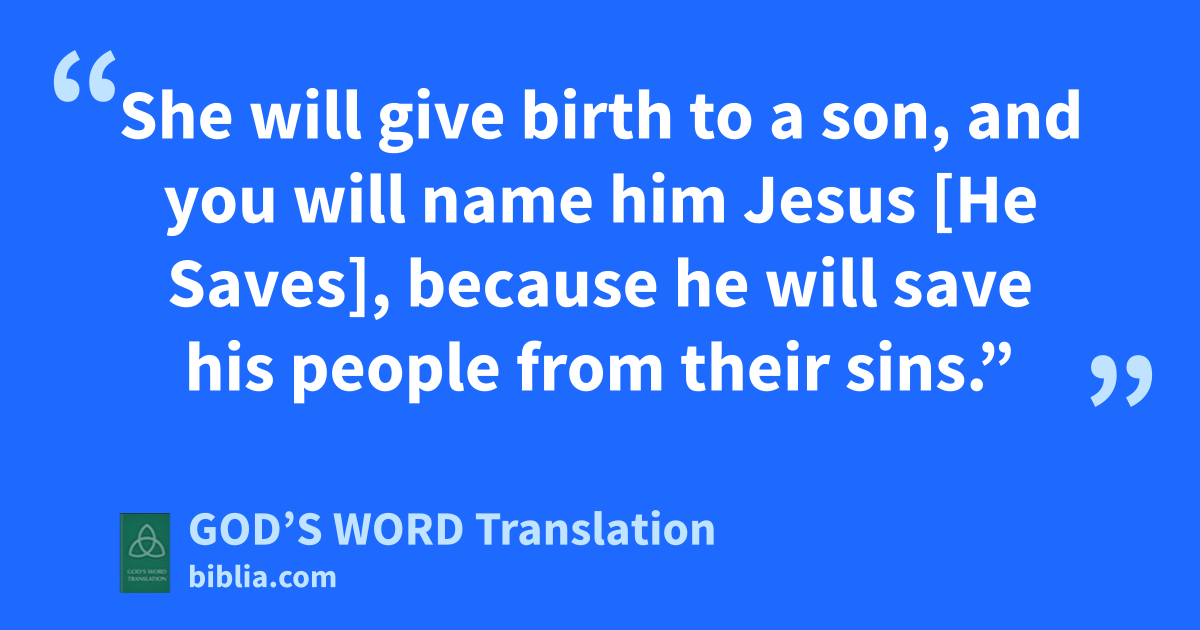 20 Joseph had this in mind when an angel of the Lord appeared to him in a dream. The angel said to him, “Joseph, descendant of David, don’t be afraid to take Mary as your wife. She is pregnant by the Holy Spirit. 21 She will give birth to a son, and you will name him Jesus [He Saves], because he will save his people from their sins.” 22 All this happened so that what the Lord had spoken through the prophet came true: 23 “The virgin will become pregnant and give birth to a son, and they will name him Immanuel,” which means “God is with us.”