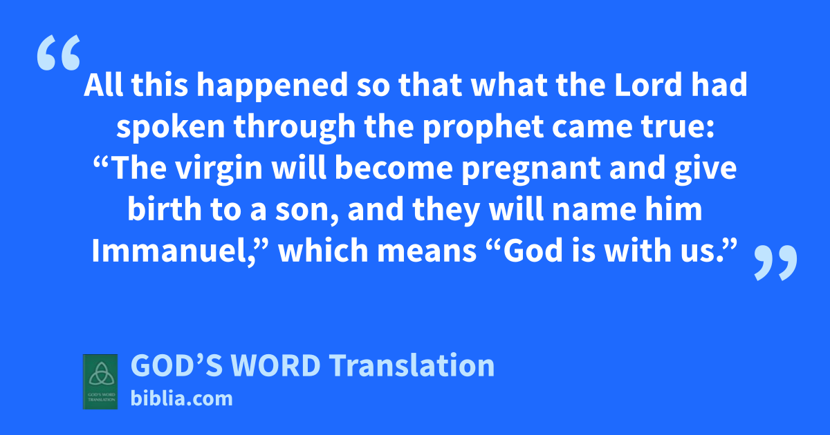 20 Joseph had this in mind when an angel of the Lord appeared to him in a dream. The angel said to him, “Joseph, descendant of David, don’t be afraid to take Mary as your wife. She is pregnant by the Holy Spirit. 21 She will give birth to a son, and you will name him Jesus [He Saves], because he will save his people from their sins.” 22 All this happened so that what the Lord had spoken through the prophet came true: 23 “The virgin will become pregnant and give birth to a son, and they will name him Immanuel,” which means “God is with us.”
