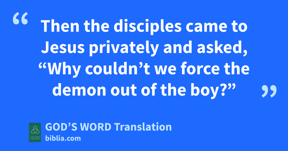 19 Then the disciples came to Jesus privately and asked, “Why couldn’t we force the demon out of the boy?”