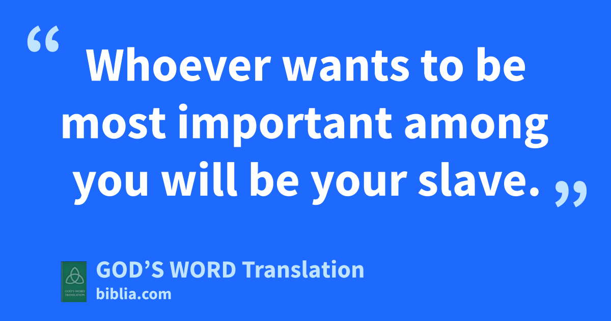 24 When the other ten apostles heard about this, they were irritated with the two brothers. 25 Jesus called the apostles and said, “You know that the rulers of nations have absolute power over people and their officials have absolute authority over people. 26 But that’s not the way it’s going to be among you. Whoever wants to become great among you will be your servant. 27 Whoever wants to be most important among you will be your slave. 28 It’s the same way with the Son of Man. He didn’t come so that others could serve him. He came to serve and to give his life as a ransom for many people.”
