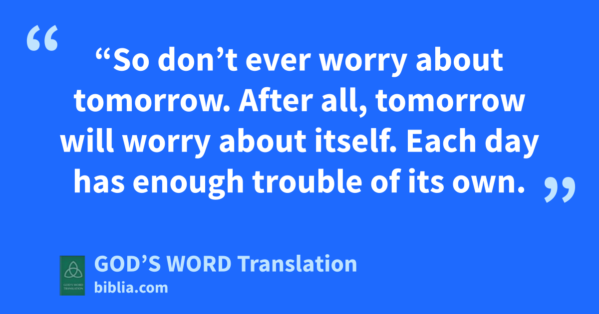 34 “So don’t ever worry about tomorrow. After all, tomorrow will worry about itself. Each day has enough trouble of its own.