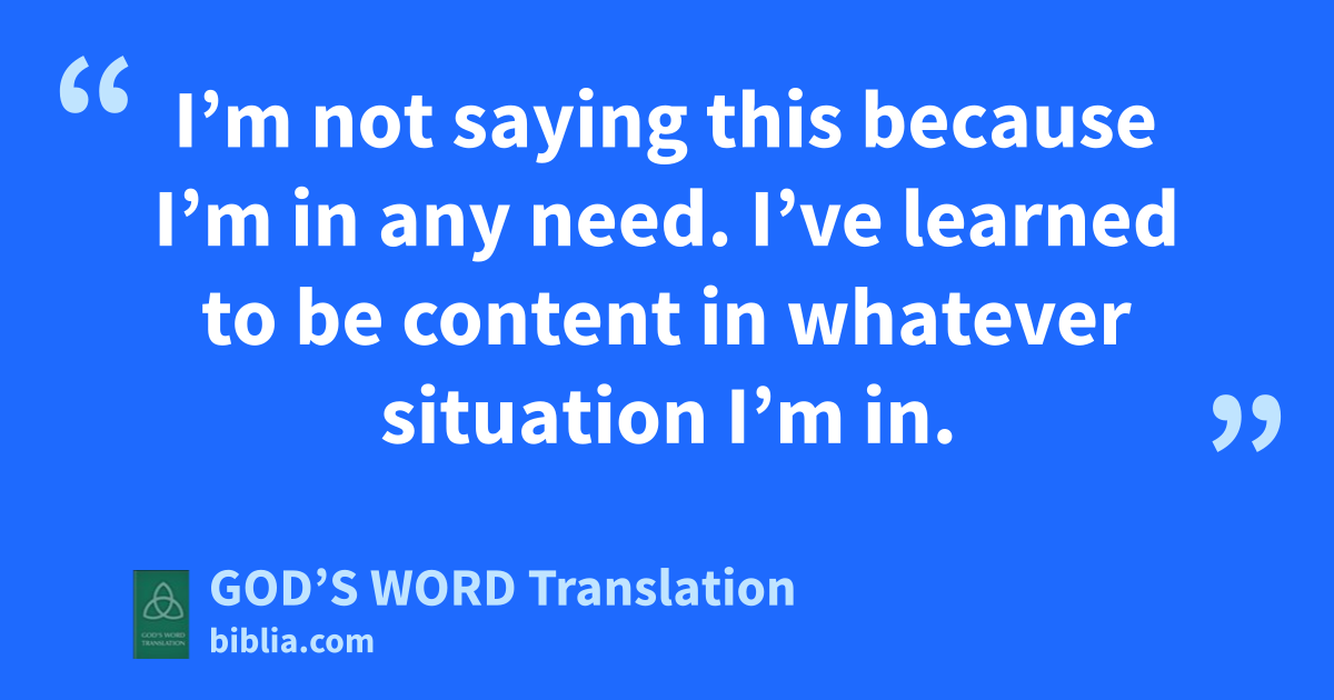10 The Lord has filled me with joy because you again showed interest in me. You were interested but did not have an opportunity to show it. 11 I’m not saying this because I’m in any need. I’ve learned to be content in whatever situation I’m in. 12 I know how to live in poverty or prosperity. No matter what the situation, I’ve learned the secret of how to live when I’m full or when I’m hungry, when I have too much or when I have too little. 13 I can do everything through Christ who strengthens me. 14 Nevertheless, it was kind of you to share my troubles.