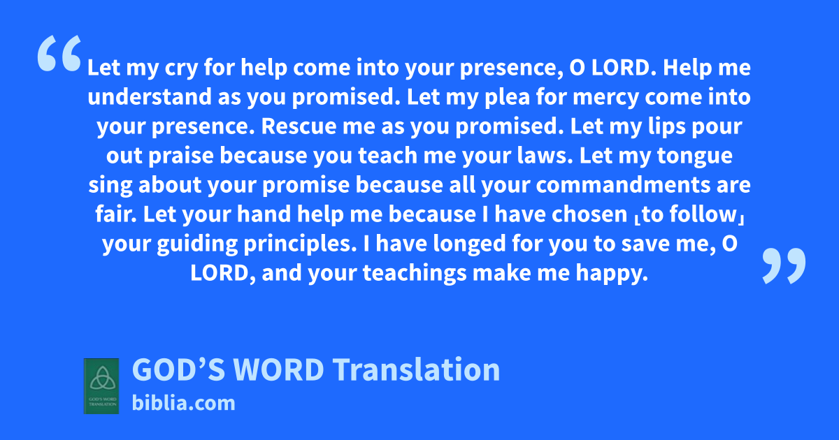 169 Let my cry for help come into your presence, O Lord.