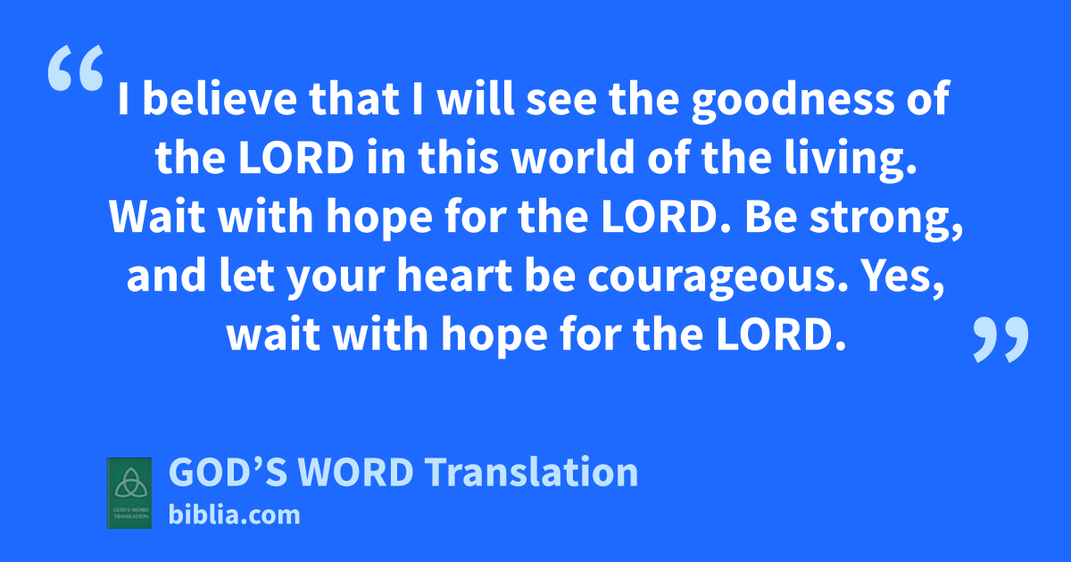 13 I believe that I will see the goodness of the Lord