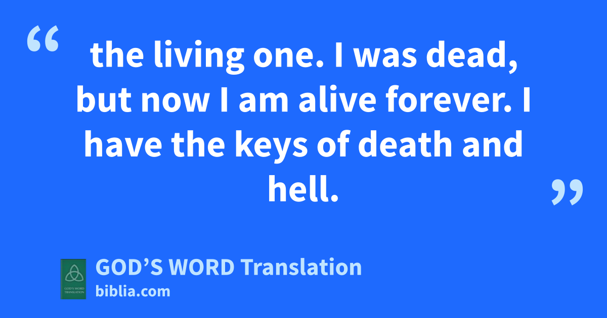 17 When I saw him, I fell down at his feet like a dead man. Then he laid his right hand on me and said, “Don’t be afraid! I am the first and the last, 18 the living one. I was dead, but now I am alive forever. I have the keys of death and hell. 19 Therefore, write down what you have seen, what is, and what is going to happen after these things. 20 The hidden meaning of the seven stars that you saw in my right hand and the seven gold lamp stands is this: The seven stars are the messengers of the seven churches, and the seven lamp stands are the seven churches.