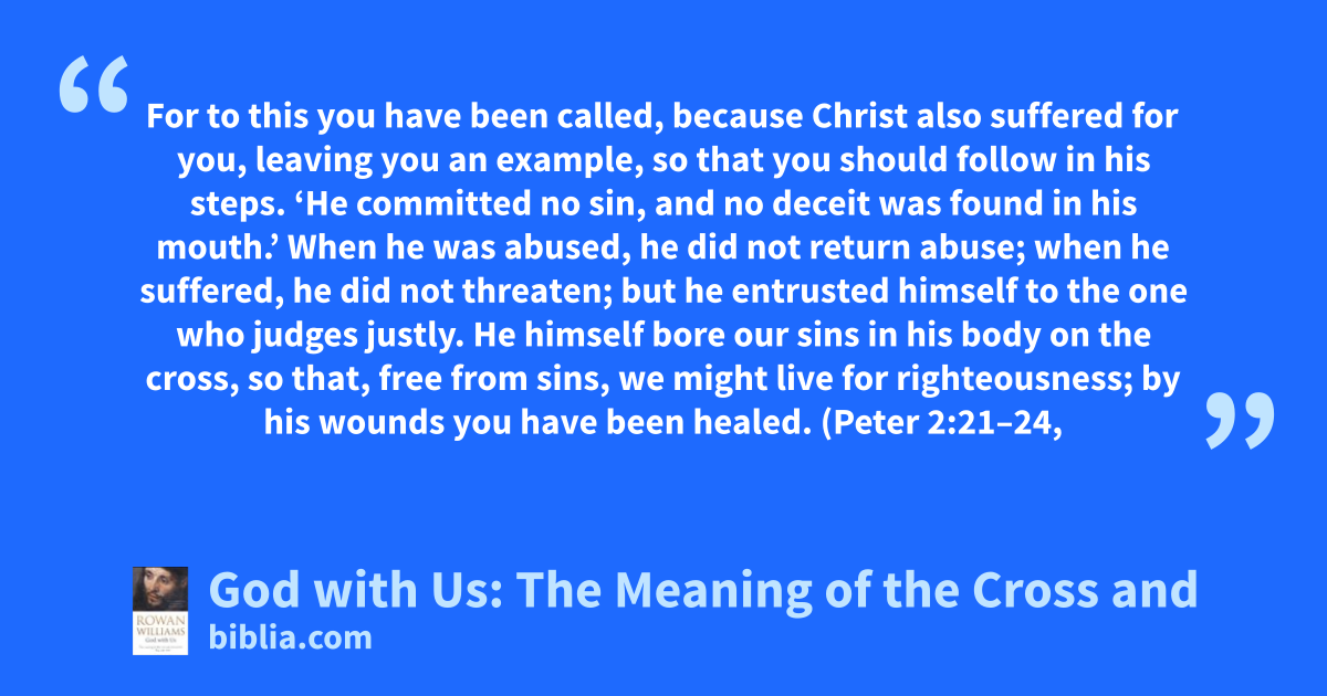 For to this you have been called, because Christ also suffered for you, leaving you an example, so that you should follow in his steps. ‘He committed no sin, and no deceit was found in his mouth.’ When he was abused, he did not return abuse; when he suffered, he did not threaten; but he entrusted himself to the one who judges justly. He himself bore our sins in his body on the cross, so that, free from sins, we might live for righteousness; by his wounds you have been healed. (Peter 2:21–24,