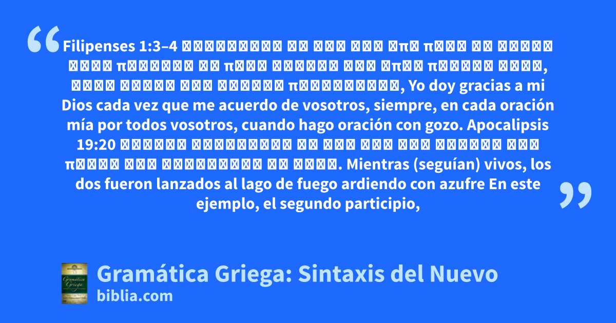 Muchos estudiantes de griego se frustran porque nunca aprenden cómo aplicar su conocimiento básico del griego a una interpretación del texto. Este libro ofrece un texto de referencia para los cursos de gramática griega del segundo año, y servirá de vínculo entre las formas de las palabras y sus diferentes usos dentro de contextos distintos. Estas diferencias casi siempre cambian el significado de...