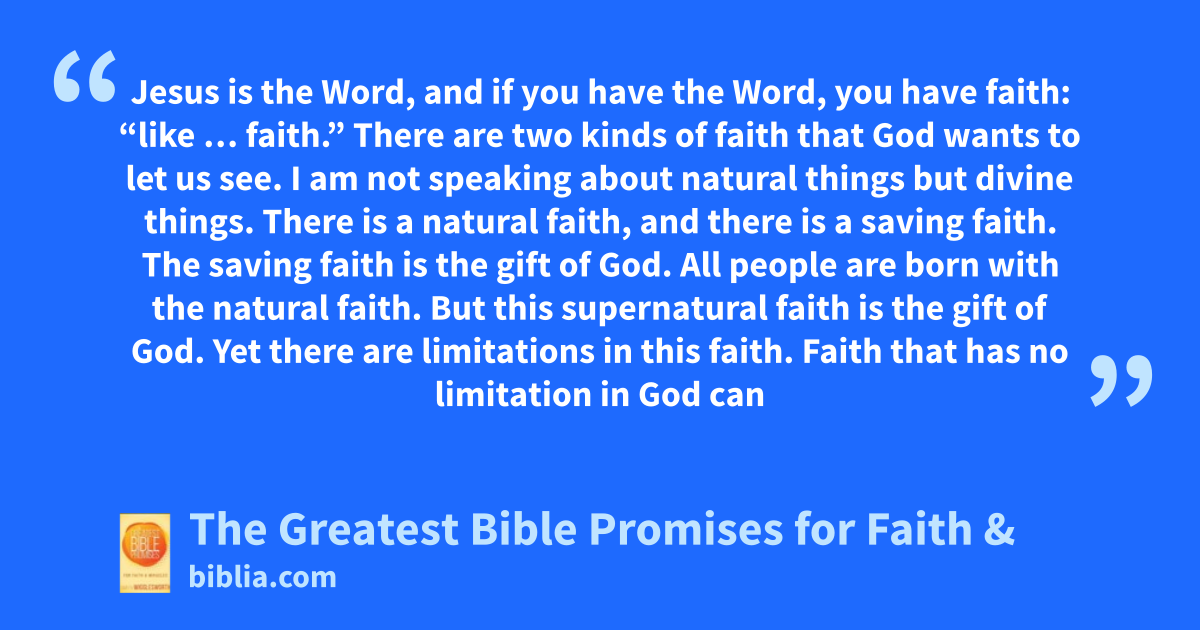Jesus is the Word, and if you have the Word, you have faith: “like … faith.” There are two kinds of faith that God wants to let us see. I am not speaking about natural things but divine things. There is a natural faith, and there is a saving faith. The saving faith is the gift of God. All people are born with the natural faith. But this supernatural faith is the gift of God. Yet there are limitations in this faith. Faith that has no limitation in God can