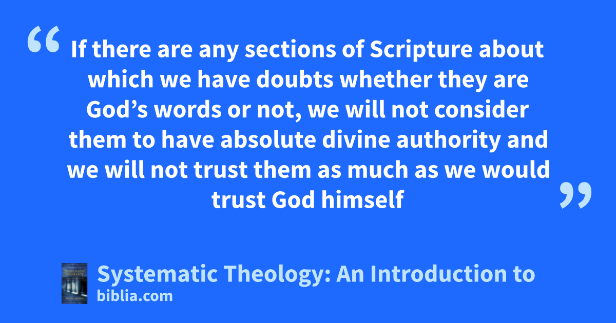 If there are any sections of Scripture about which we have doubts whether they are God’s words or not, we will not consider them to have absolute divine authority and we will not trust them as much as we would trust God himself