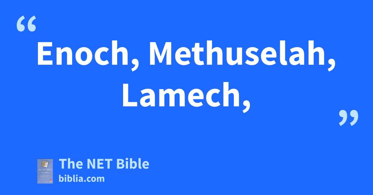 1:1 Adam, Seth, Enosh, 1:2 Kenan, Mahalalel, Jered, 1:3 Enoch, Methuselah, Lamech, 1:4 Noah, Shem, Ham, and Japheth.1