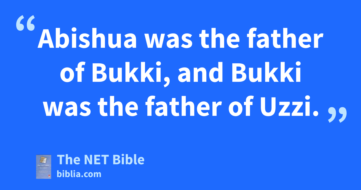 6:4 Eleazar was the father of Phinehas, and Phinehas was the father of Abishua. 6:5 Abishua was the father of Bukki, and Bukki was the father of Uzzi. 6:6 Uzzi was the father of Zerahiah, and Zerahiah was the father of Meraioth. 6:7 Meraioth was the father of Amariah, and Amariah was the father of Ahitub. 6:8 Ahitub was the father of Zadok, and Zadok was the father of Ahimaaz. 6:9 Ahimaaz was the father of Azariah, and Azariah was the father of Johanan. 6:10 Johanan was the father of Azariah, who served as a priest in the temple Solomon built in Jerusalem.2 6:11 Azariah was the father of Amariah, and Amariah was the father of Ahitub. 6:12 Ahitub was the father of Zadok, and Zadok was the father of Shallum. 6:13 Shallum was the father of Hilkiah, and Hilkiah was the father of Azariah. 6:14 Azariah was the father of Seraiah, and Seraiah was the father of Jehozadak. 6:15 Jehozadak went into exile when the Lord sent the people of3 Judah and Jerusalem into exile by the hand of Nebuchadnezzar.
