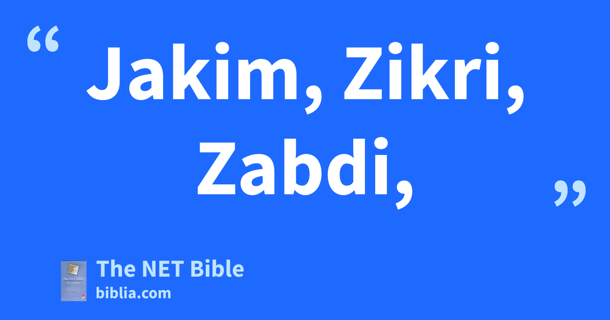 8:19 Jakim, Zikri, Zabdi, 8:20 Elienai, Zillethai, Eliel, 8:21 Adaiah, Beraiah, and Shimrath were the sons of Shimei.