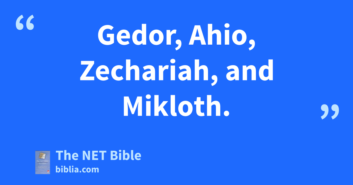 9:35 Jeiel (the father of Gibeon) lived in Gibeon. His wife was Maacah. 9:36 His firstborn son was Abdon, followed by Zur, Kish, Baal, Ner, Nadab, 9:37 Gedor, Ahio, Zechariah, and Mikloth. 9:38 Mikloth was the father of Shimeam. They also lived near their relatives in Jerusalem.18