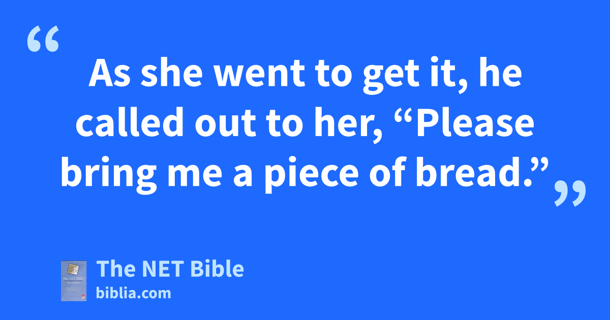 17:7 After a while,7 the stream dried up because there had been no rain in the land. 17:8 The Lord told him,8 17:9 “Get up, go to Zarephath in Sidonian territory, and live there. I have already told9 a widow who lives there to provide for you.” 17:10 So he got up and went to Zarephath. When he went through the city gate, there was a widow gathering wood. He called out to her, “Please give me a cup10 of water, so I can take a drink.” 17:11 As she went to get it, he called out to her, “Please bring me a piece of bread.”11 17:12 She said, “As certainly as the Lord your God lives, I have no food, except for a handful of flour in a jar and a little olive oil in a jug. Right now I am gathering a couple of sticks for a fire. Then I’m going home to make one final meal for my son and myself. After we have eaten that, we will die of starvation.”12 17:13 Elijah said to her, “Don’t be afraid. Go and do as you planned.13 But first make a small cake for me and bring it to me; then make something for yourself and your son. 17:14 For this is what the Lord God of Israel says, ‘The jar of flour will not be empty and the jug of oil will not run out until the day the Lord makes it rain on the surface of the ground.’ ” 17:15 She went and did as Elijah told her; there was always enough food for Elijah and for her and her family.14 17:16 The jar of flour was never empty and the jug of oil never ran out, just as the Lord had promised15 through Elijah.