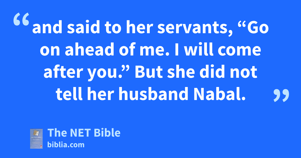25:40 So the servants of David went to Abigail at Carmel and said to her, “David has sent us to you to bring you back to be his wife.” 25:41 She arose, bowed her face toward the ground, and said, “Your female servant, like a lowly servant, will wash43 the feet of the servants of my lord.” 25:42 Then Abigail quickly went and mounted her donkey, with five of her female servants accompanying her.44 She followed David’s messengers and became his wife.